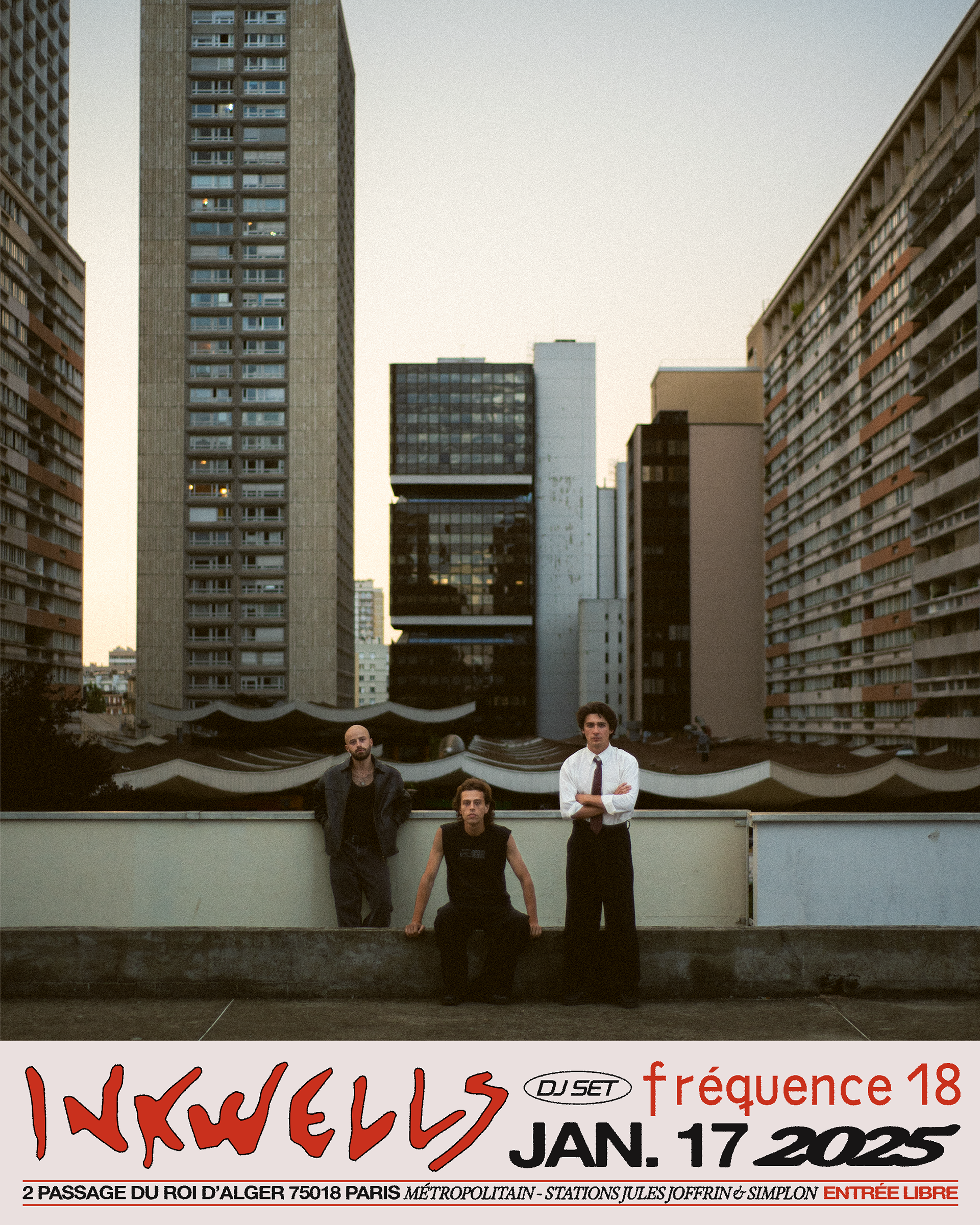 Graphic design of event poster for Inkwells' hybrid DJ set at Fréquence 18, Paris. Art direction by KÅARGHAUS & photography by Gabriel Sénéchal.