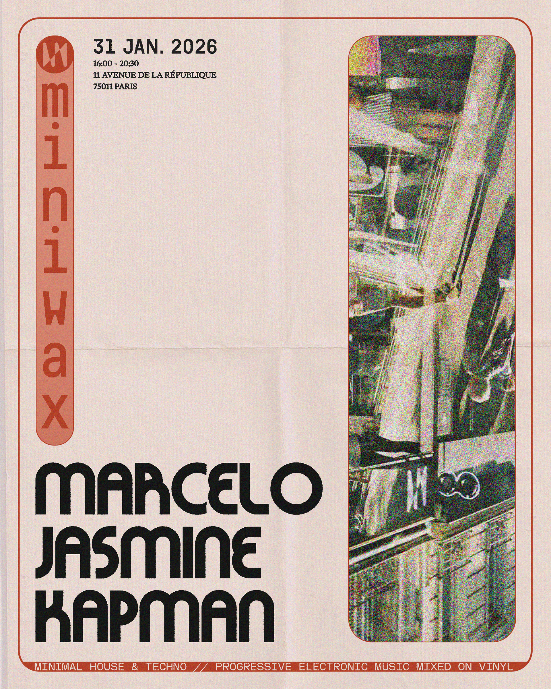 Alternative event flyer for Marcelo's DJ set at Miniwax, Paris designed by KÅARGHAUS.